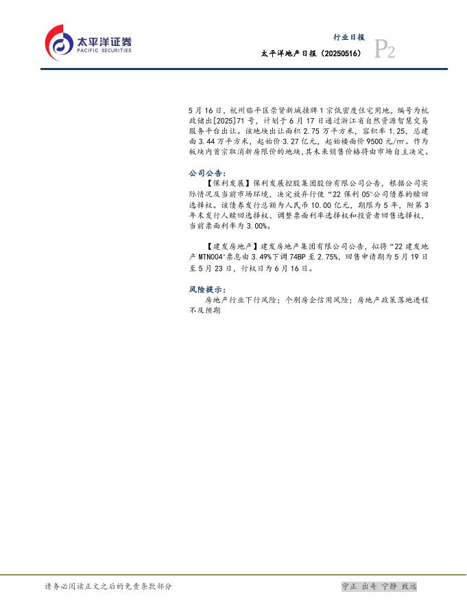 太平洋证券:房地产日报:杭州临平区崇贤新城推出首宗不限房价地块.pdf