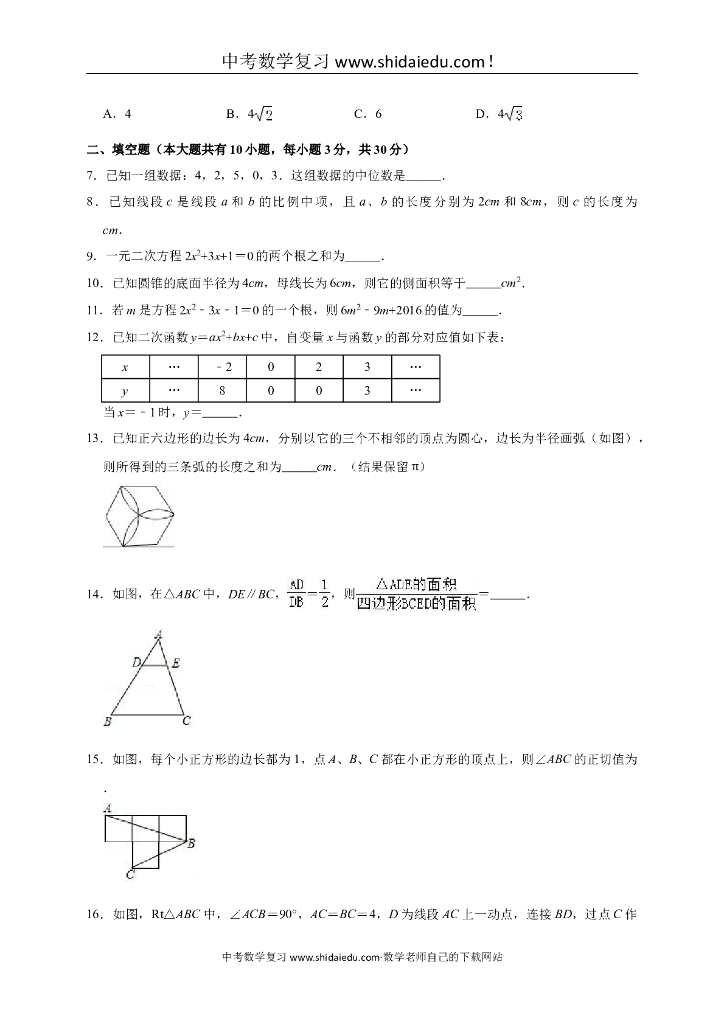 3月江苏省盐城市东台市中考数学模拟试卷(含答案解析).doc