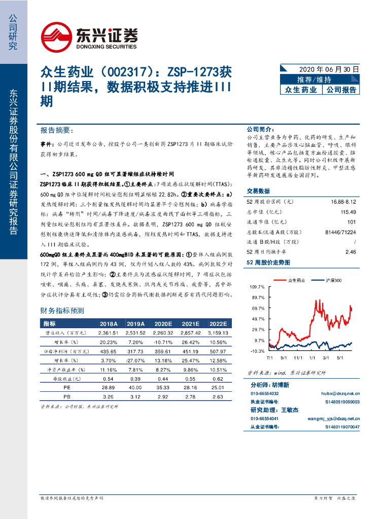 东兴证券:众生药业(002317)-ZSP-1273获II期结果,数据积极支持推进III期.pdf