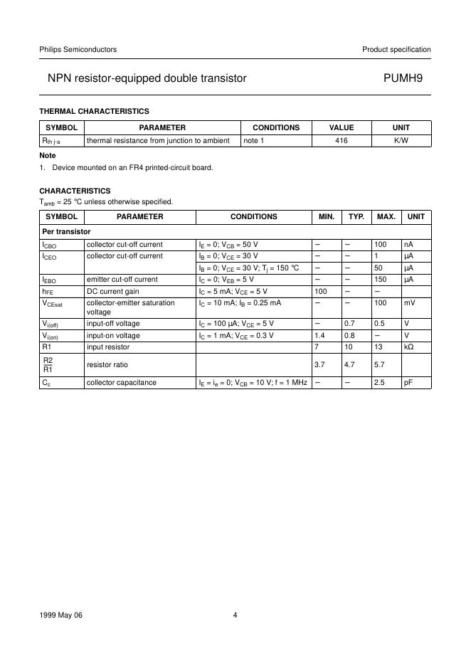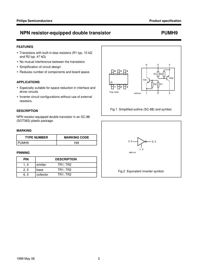 PHILIPS PUMH9 NPN resistor-equipped double transistor 数据手册.pdf