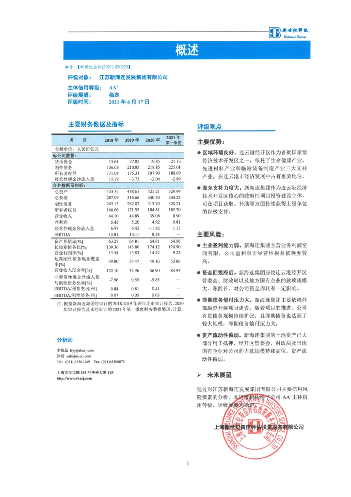 新世纪:江苏新海连发展集团有限公司主体信用评级评级报告.pdf