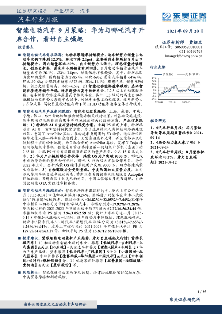 东吴证券:智能电动汽车9月策略:华为与哪吒汽车开启合作,看好自主崛起.pdf
