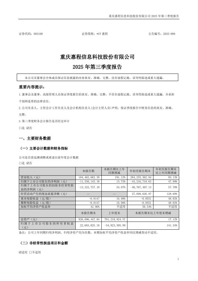 002168-*ST惠程:2025年三季度报告.pdf
