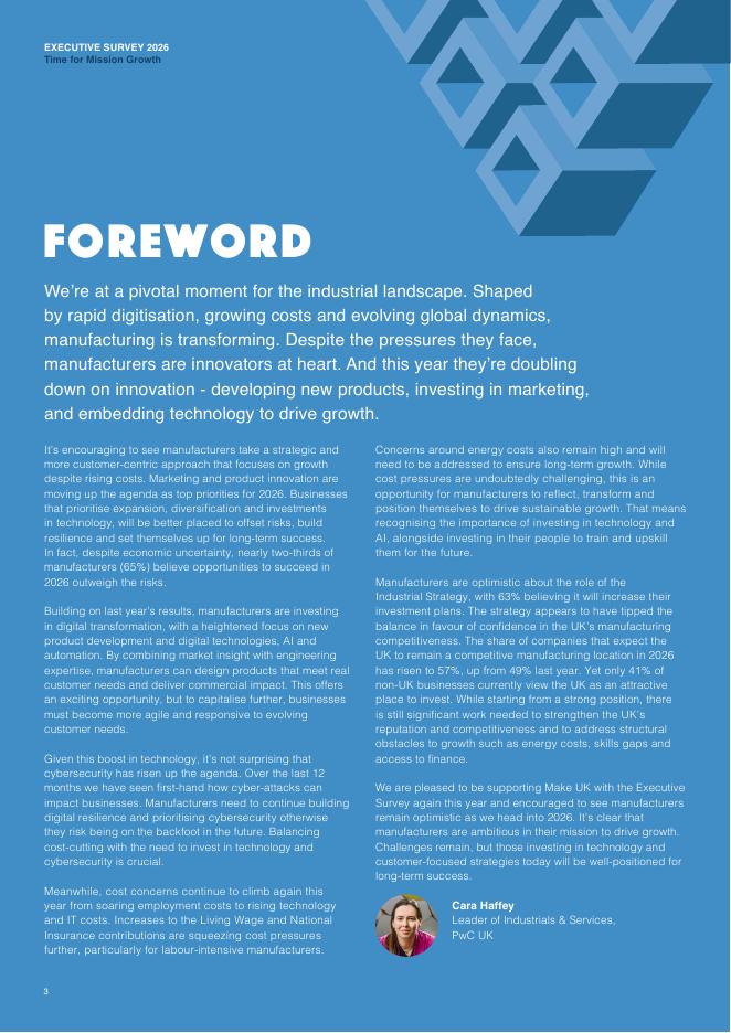 Make UK&普华永道:2026年英国制造业高管调查报告:迈向使命驱动型增长(英文版).pdf