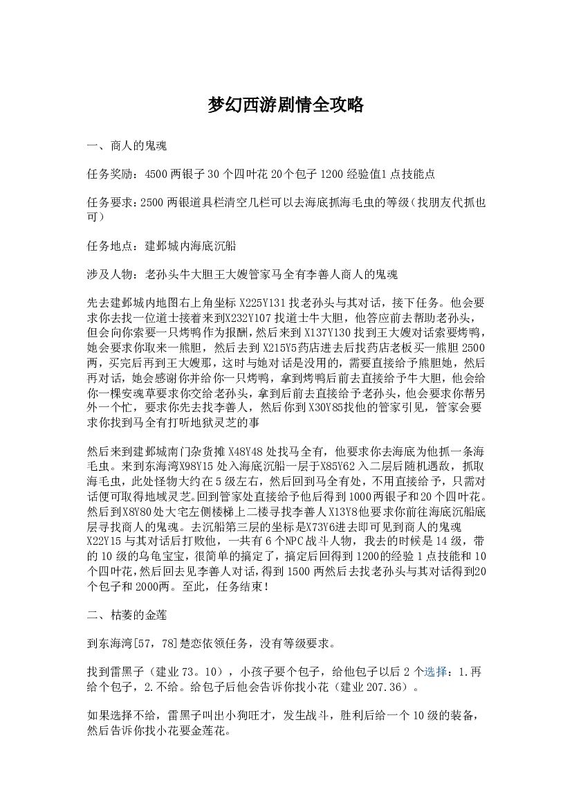 梦幻西游剧情攻略(含狮驼、盘丝岭剧情).pdf