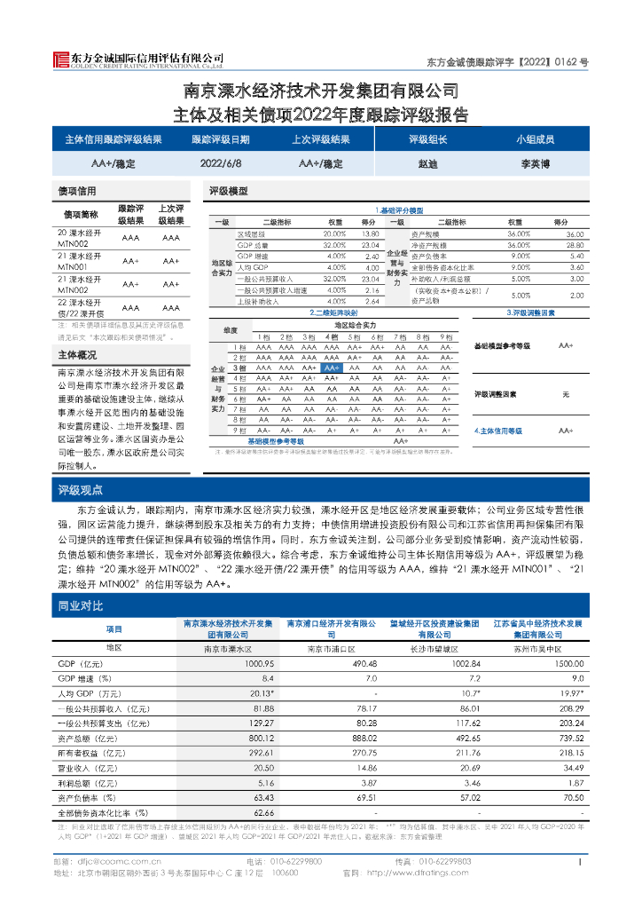 东方金诚:南京溧水经济技术开发集团有限公司主体及相关债项2022年度跟踪评级报告.pdf