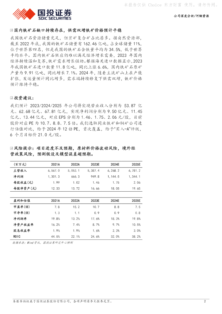 国投证券:河钢资源(000923)-铁矿贡献业绩基本盘,铜二期预计打开成长空间.pdf