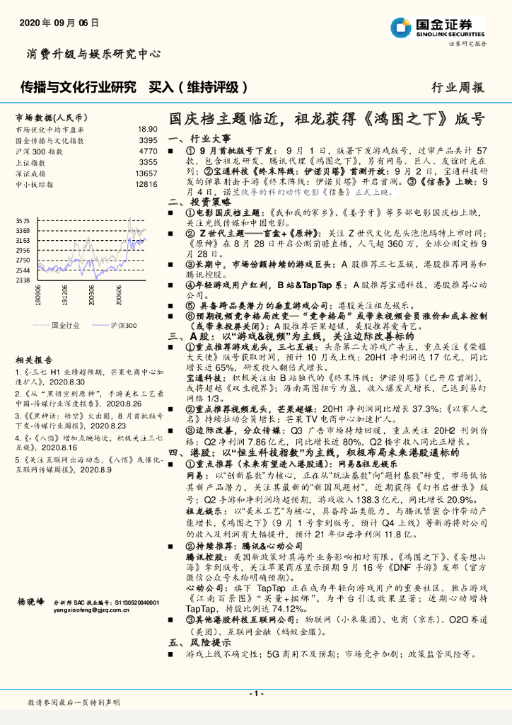 国金证券:传播与文化行业研究:国庆档主题临近,祖龙获得《鸿图之下》 版号.pdf