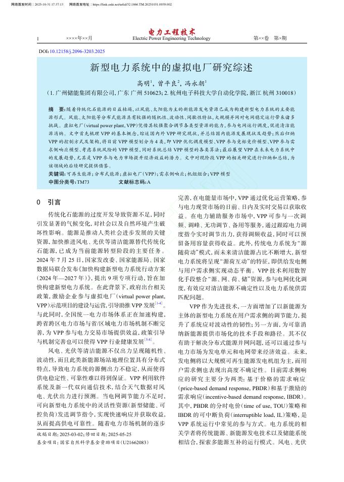 高明:新型电力系统中的虚拟电厂研究综述.pdf
