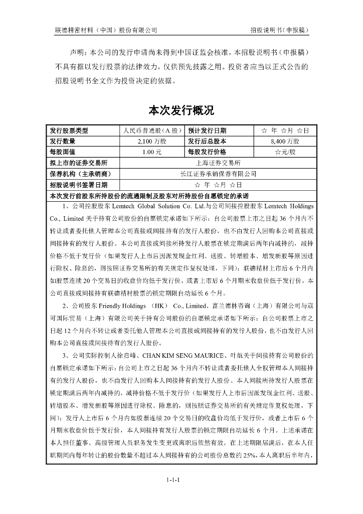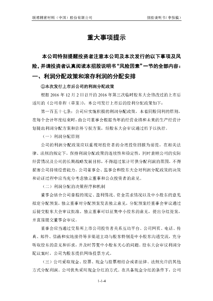 联德精密材料(中国)股份有限公司上交所主板IPO上市招股说明书.pdf