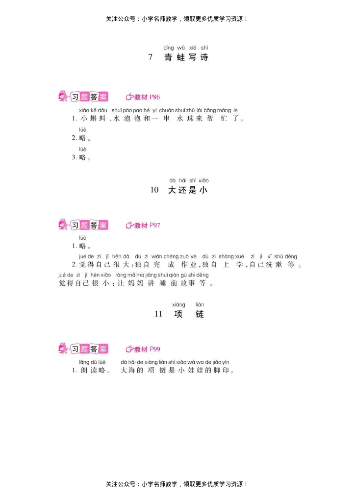 部编版一年级上册语文教材课后练习题参考答案.pdf