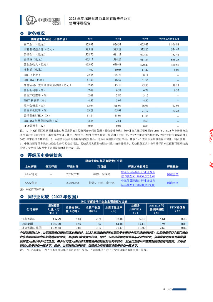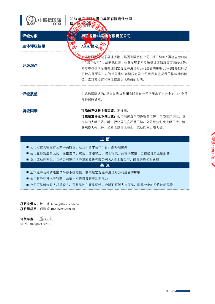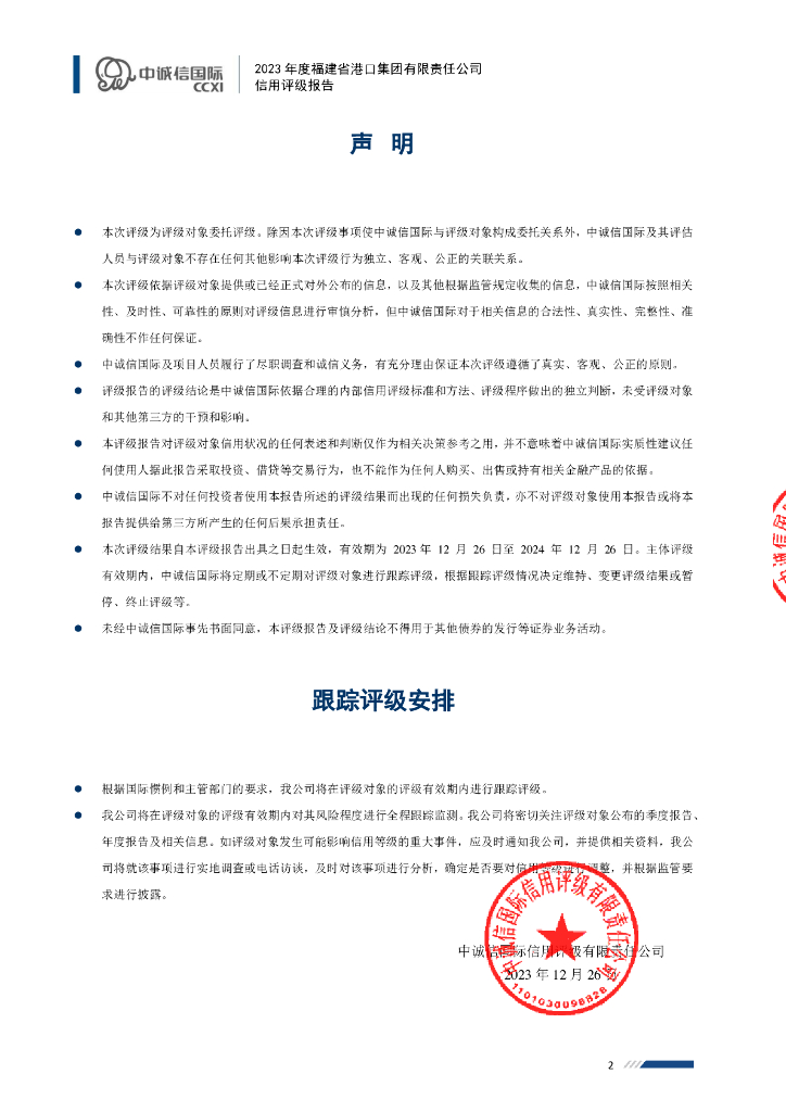 中诚信:2023年度福建省港口集团有限责任公司信用评级报告.pdf