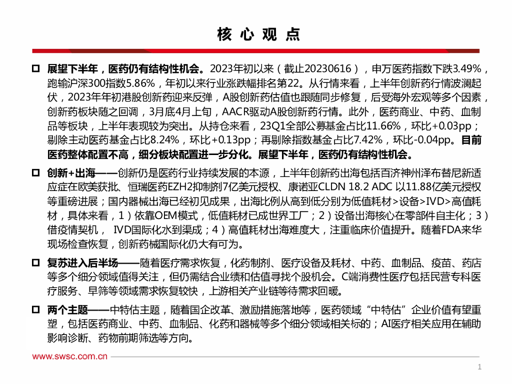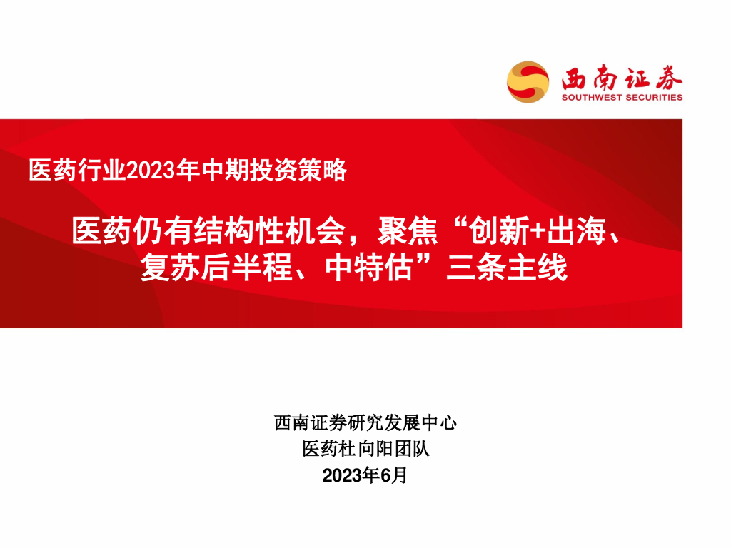 西南证券:医药行业2023年中期投资策略:医药仍有结构性机会,聚焦“创新+出海、复苏后半程、中特估”三条主线.pdf