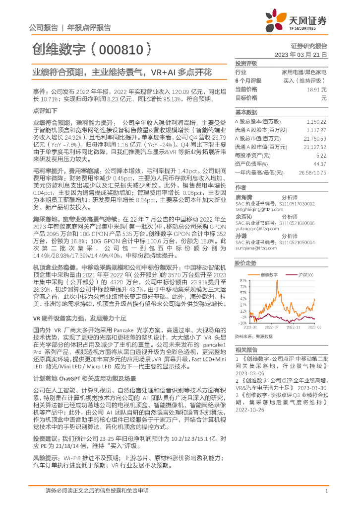 天风证券:创维数字(000810)-业绩符合预期,主业维持景气,VR+AI多点开花.pdf