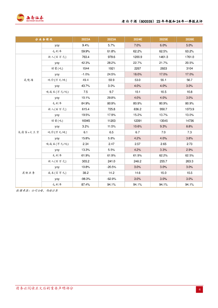 西南证券:老白干酒(600559)-23年年报和24年一季报点评:经营变革成效显著,期待业绩持续释放.pdf