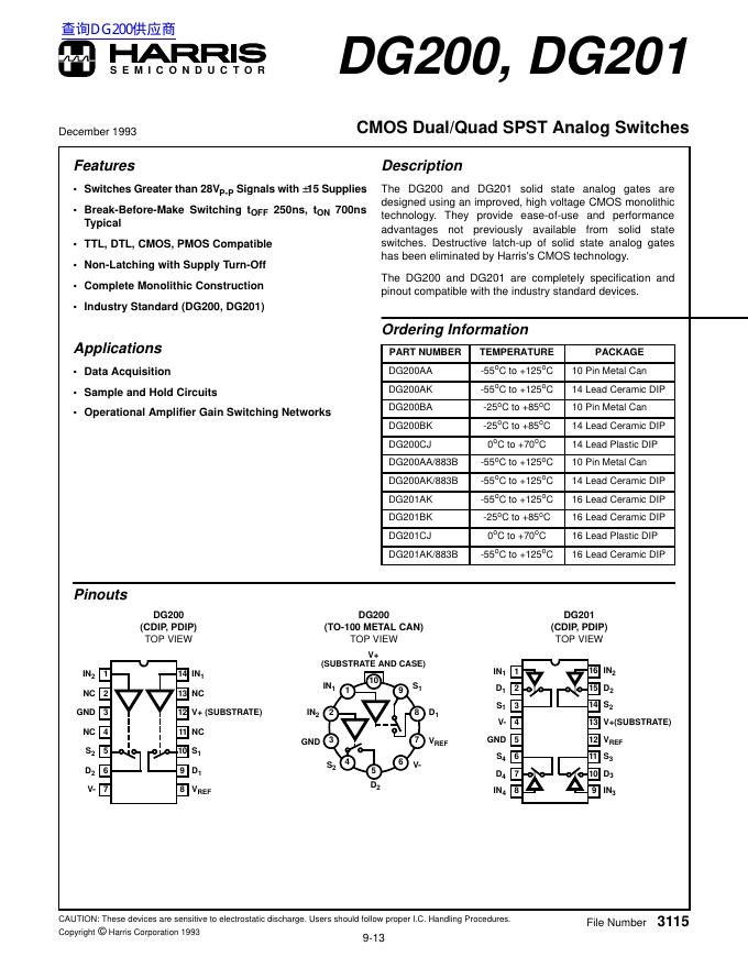 HARRIS SEMICONDUCTOR DG200, DG201 数据手册.pdf
