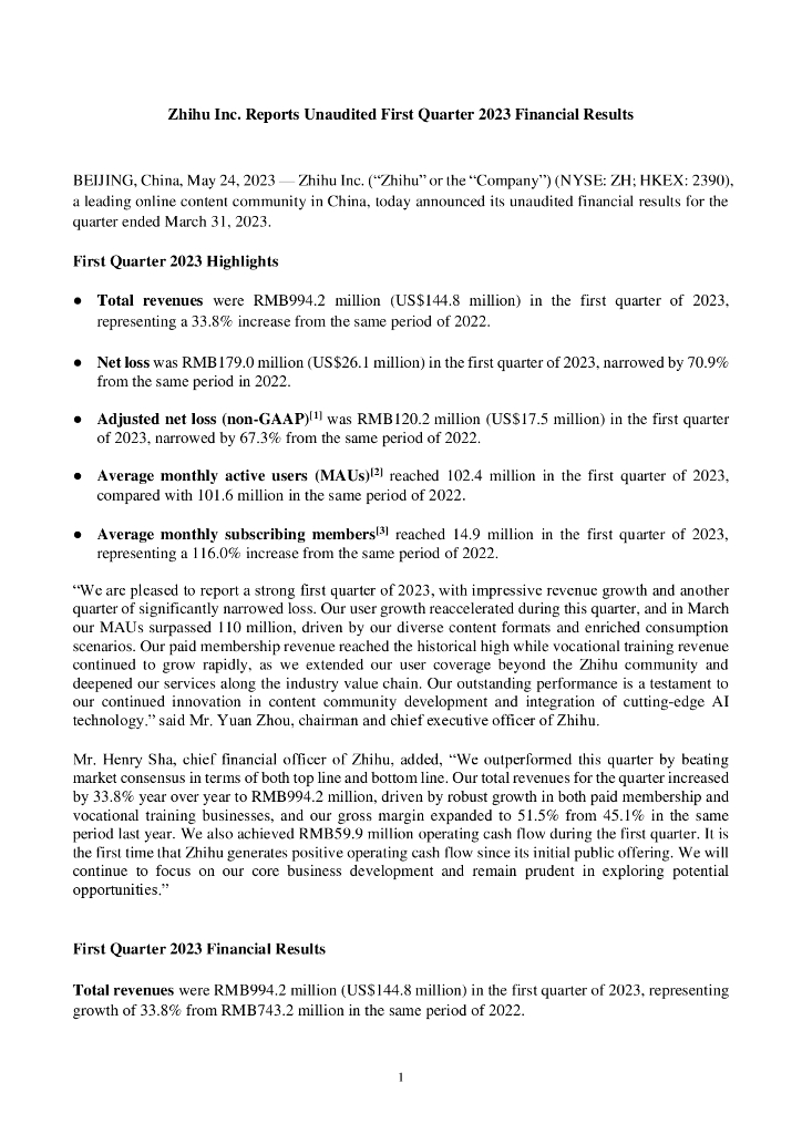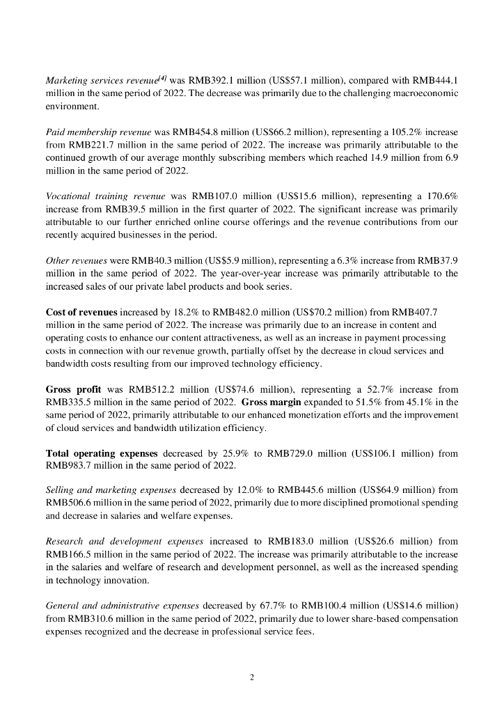知乎:2023年第一季度财务报告(英文版).pdf
