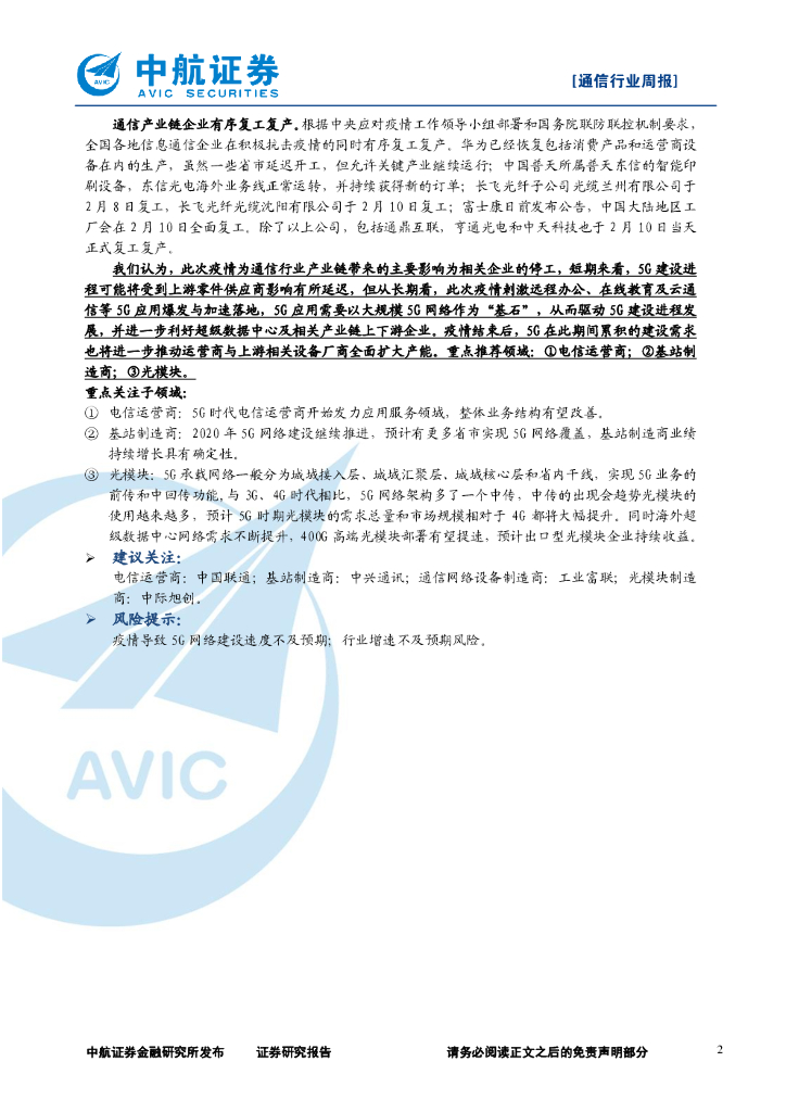 中航证券:通信行业周报:“5G远程会诊”——5G规模商用新业态.pdf