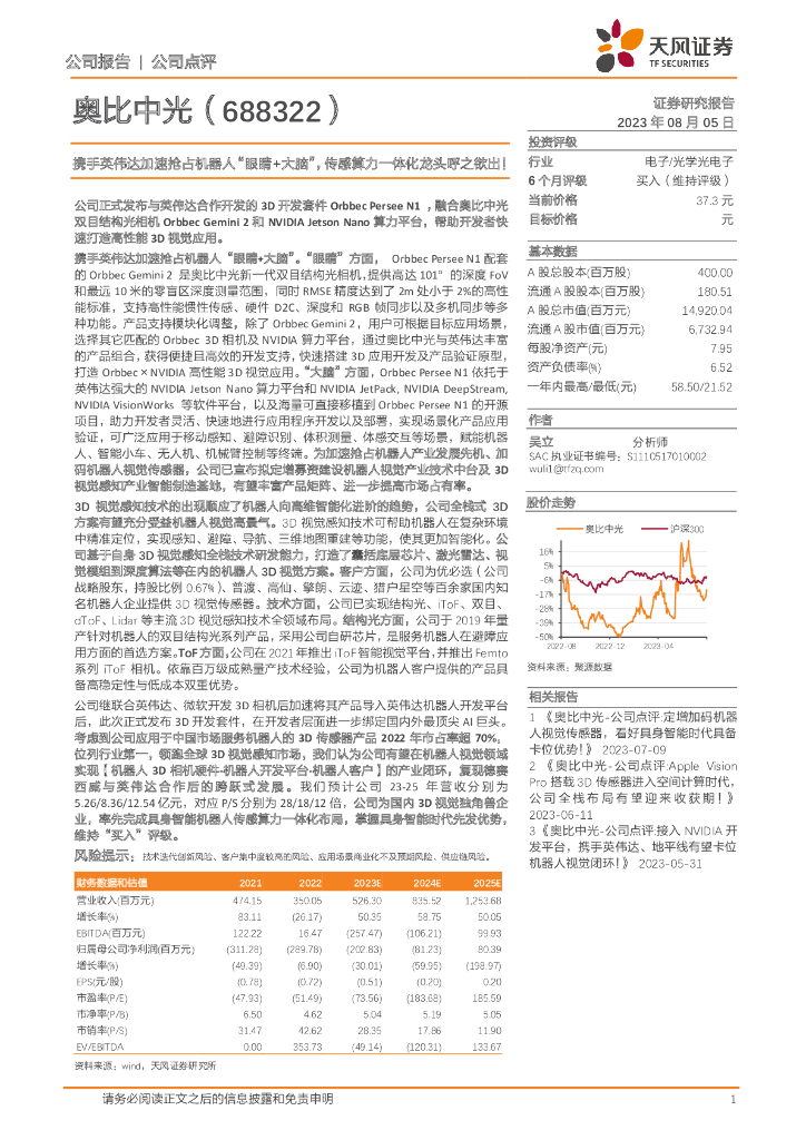 天风证券:奥比中光(688322)-携手英伟达加速抢占机器人“眼睛+大脑”,传感算力一体化龙头呼之欲出!.pdf