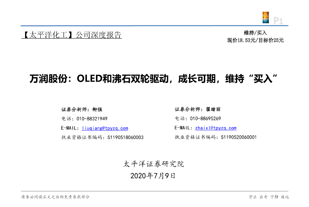 太平洋证券:万润股份:OLED和沸石双轮驱动,成长可期,维持“买入”.pdf