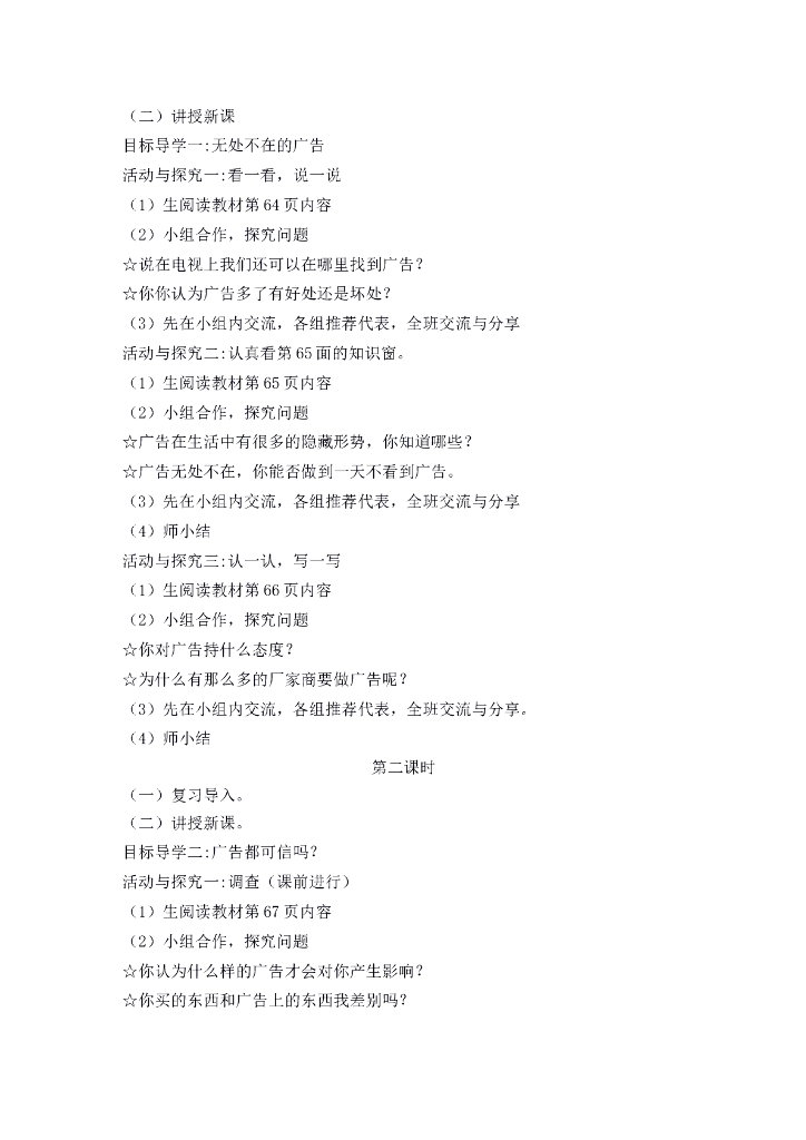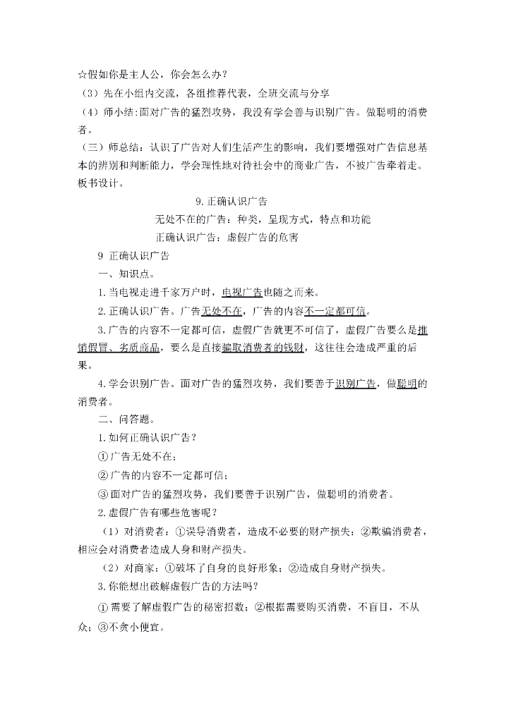 道德与法制9 正确认识广告 教案1-2课时.doc