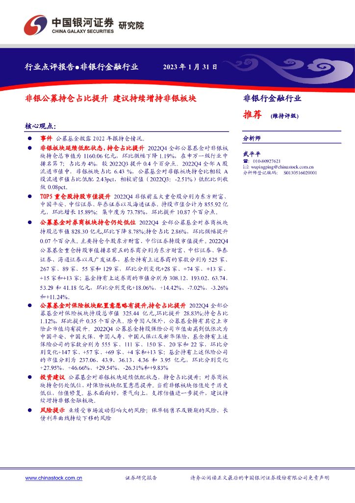 中国银河:非银行金融行业:非银公募持仓占比提升 建议持续增持非银板块.pdf