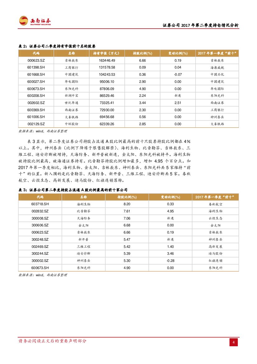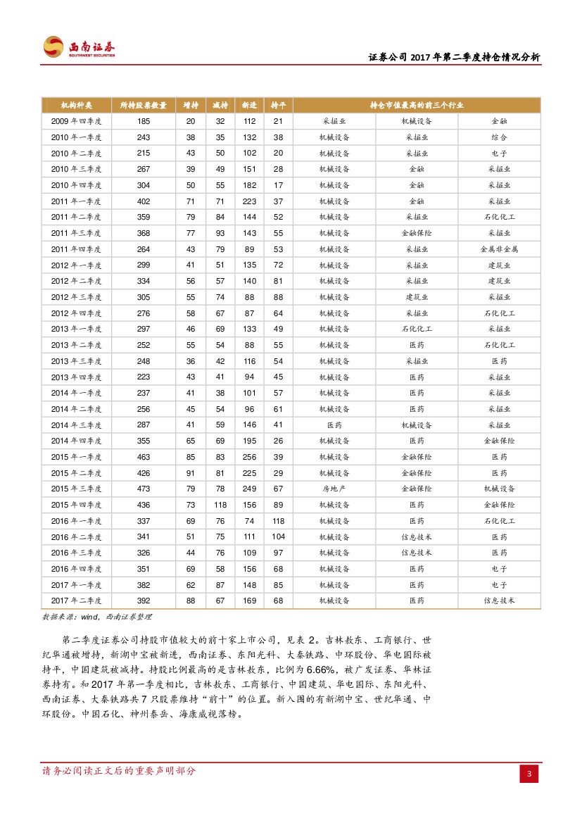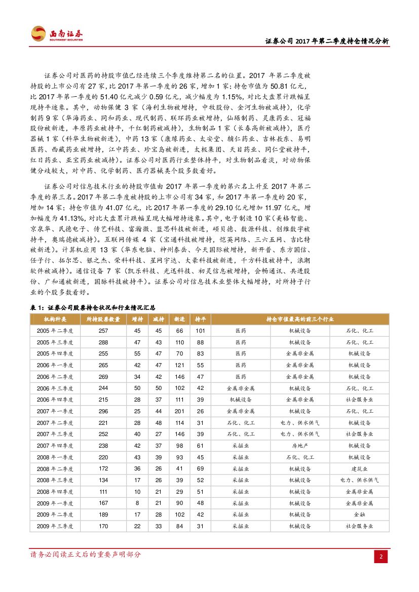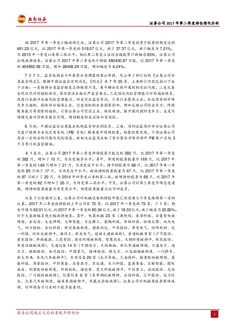 西南证券:证券公司2017年第二季度持仓情况分析:连续两季减持 市值为近年低水平.pdf