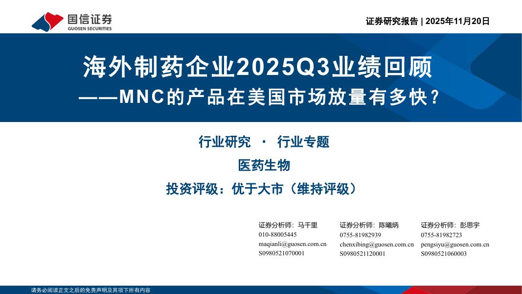 国信证券:海外制药企业2025Q3业绩回顾:MNC的产品在美国市场放量有多快?.pdf