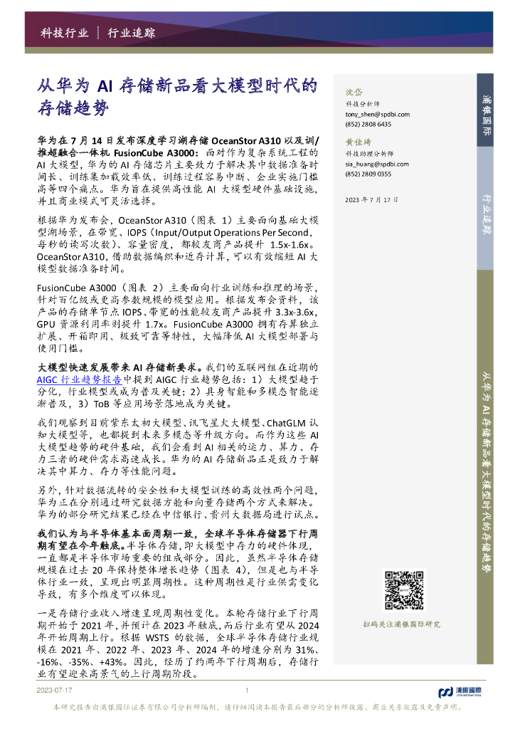 浦银国际证券:科技行业追踪:从华为AI存储新品看大模型时代的存储趋势.pdf