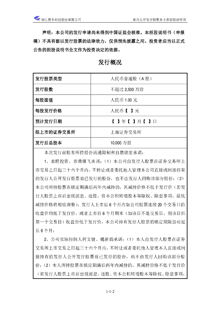 浙江晨丰科技股份有限公司上交所主板IPO上市招股说明书.pdf