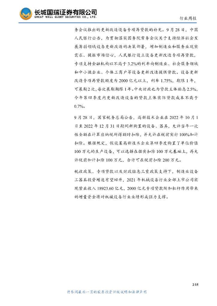 长城国瑞证券:机械设备行业双周报2022年第18期总第18期:多政策出台利好机械设备行业 持续看好四季度基本面情况.pdf