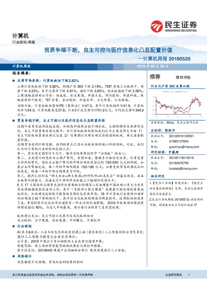 民生证券:计算机周报:贸易争端不断,自主可控与医疗信息化凸显配置价值.pdf