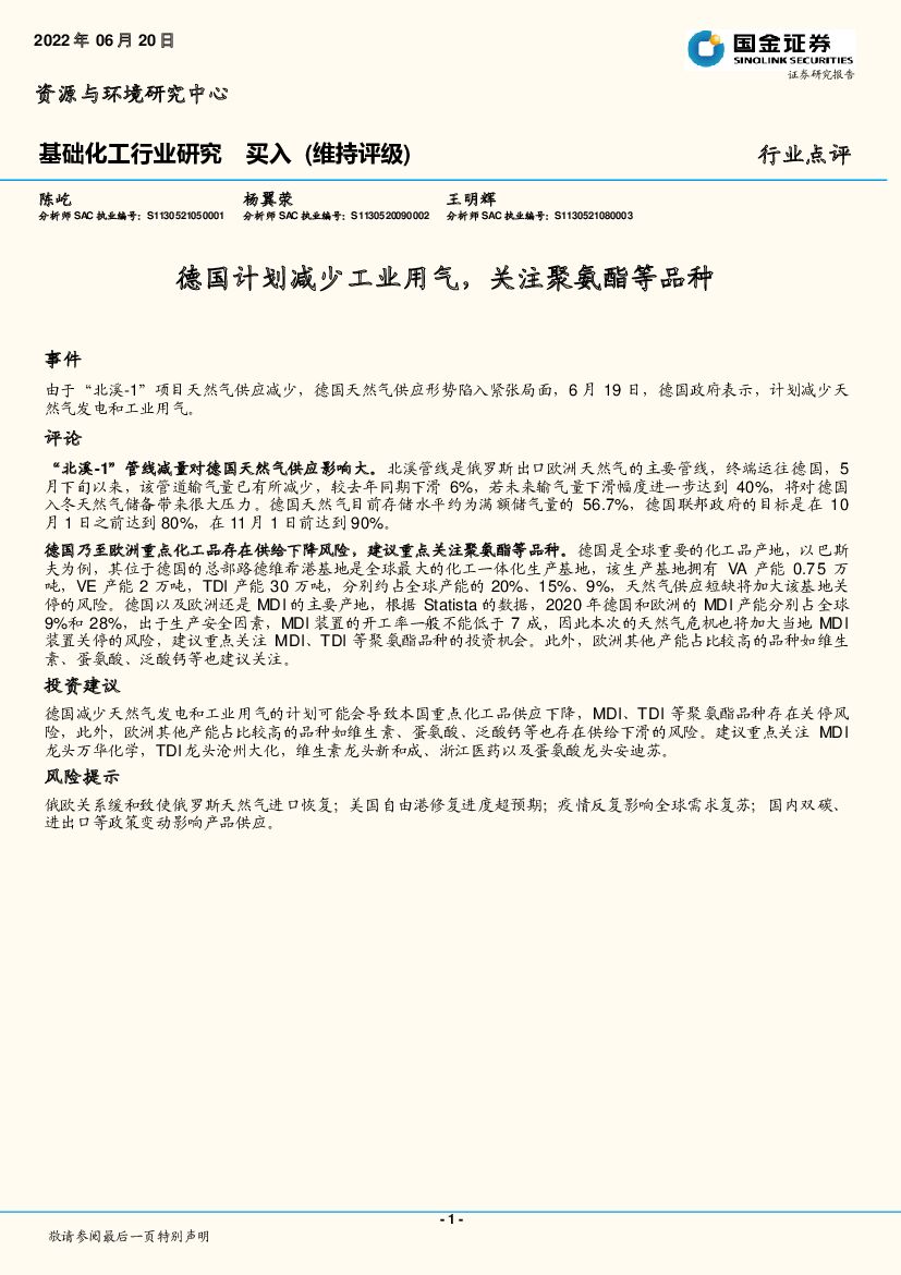 国金证券:基础化工行业研究:德国计划减少工业用气,关注聚氨酯等品种.pdf