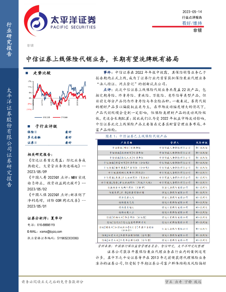 太平洋证券:非银:中信证券上线保险代销业务,长期有望洗牌既有格局.pdf