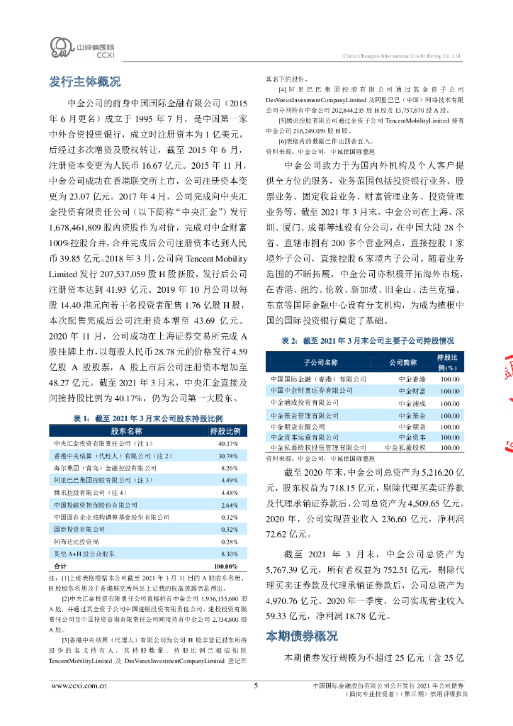 中诚信:中国国际金融股份有限公司公开发行2021年公司债券(面向专业投资者)(第三期)信用评级报告.pdf