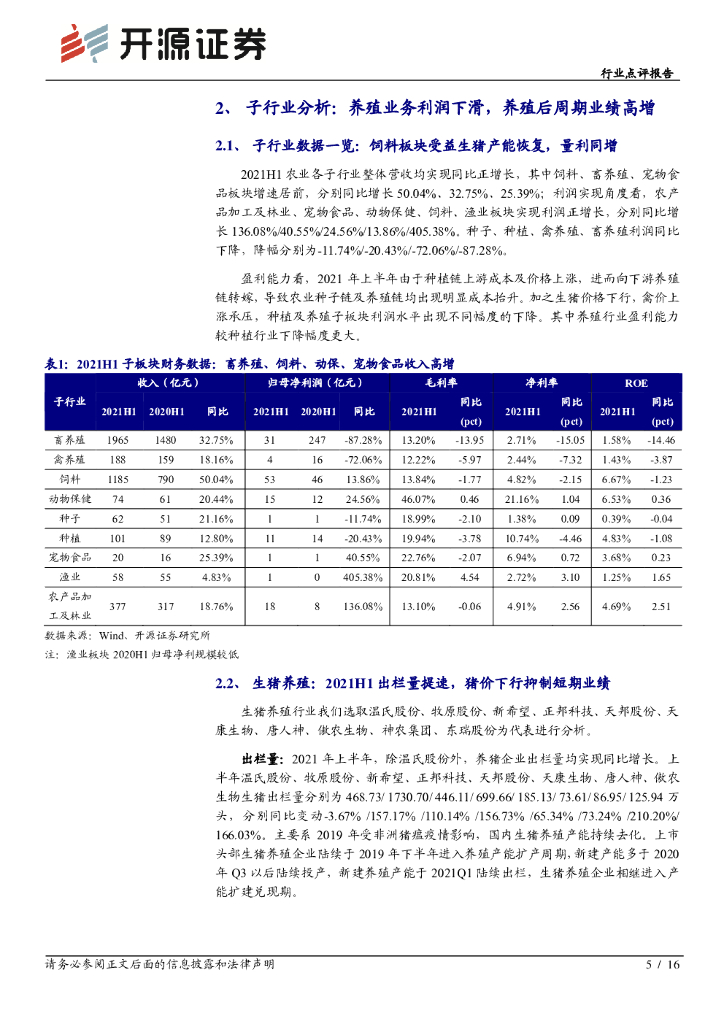 开源证券:农林牧渔行业点评报告:2021H1农业板块营收增长提速,利润兑现承压.pdf