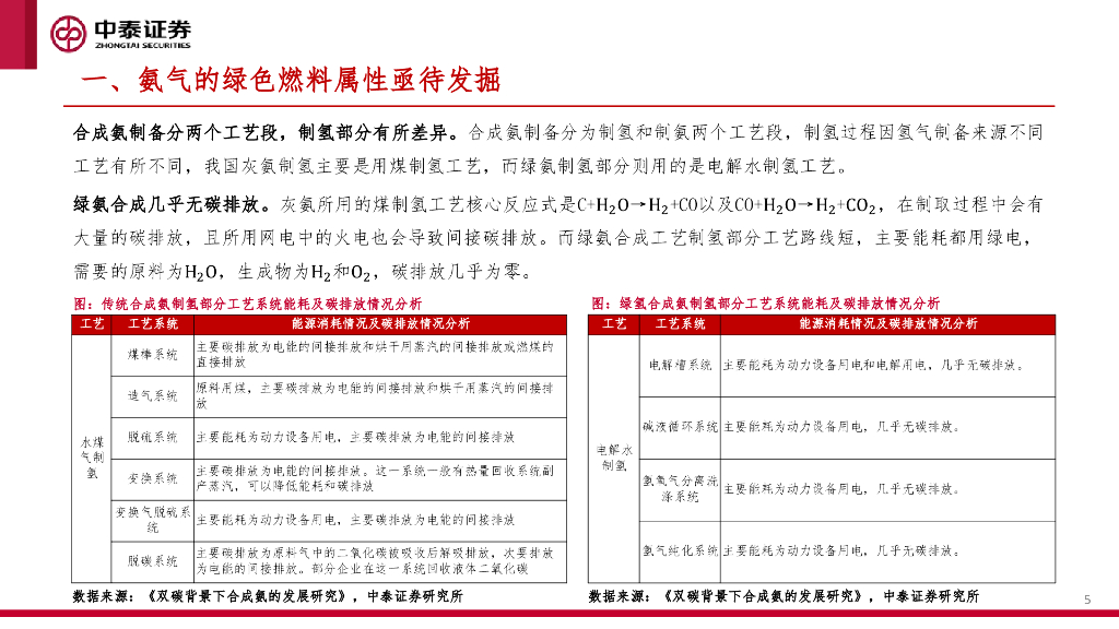 中泰证券:氢能洞察系列研究之一:绿氨掺烧—煤改新政有望打开绿氢绿氨发展空间.pdf