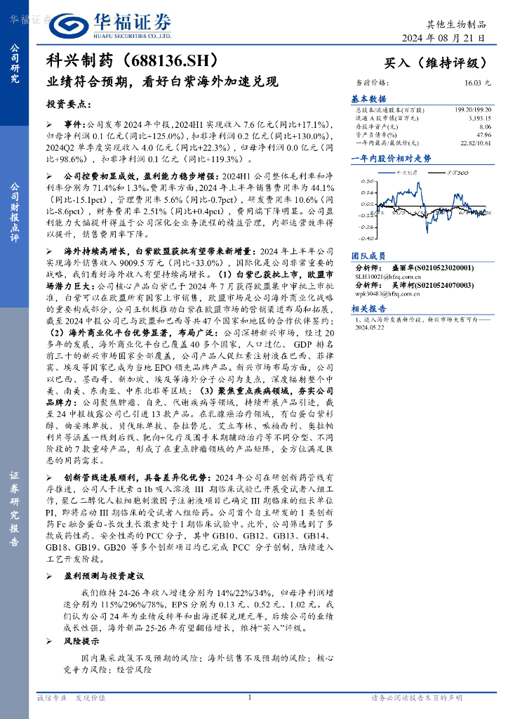 华福证券:科兴制药(688136)-业绩符合预期,看好白紫海外加速兑现.pdf