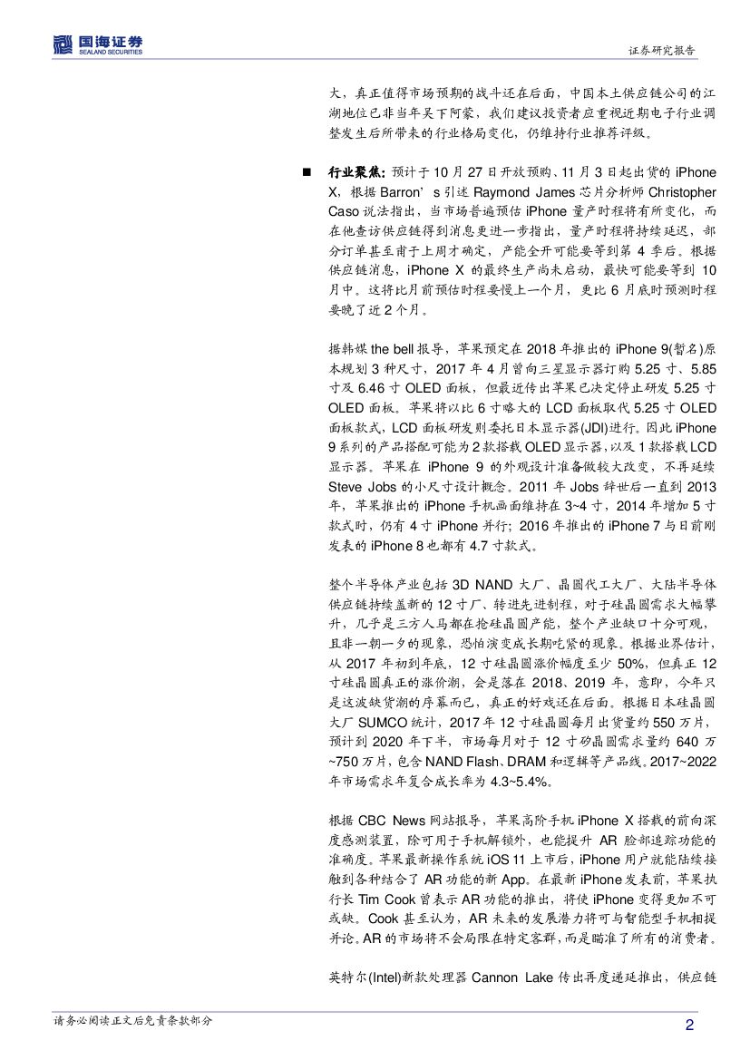 国海证券:电子行业周报:Iphone 8首售效果不及预期,X量产时点可能再度后延.pdf