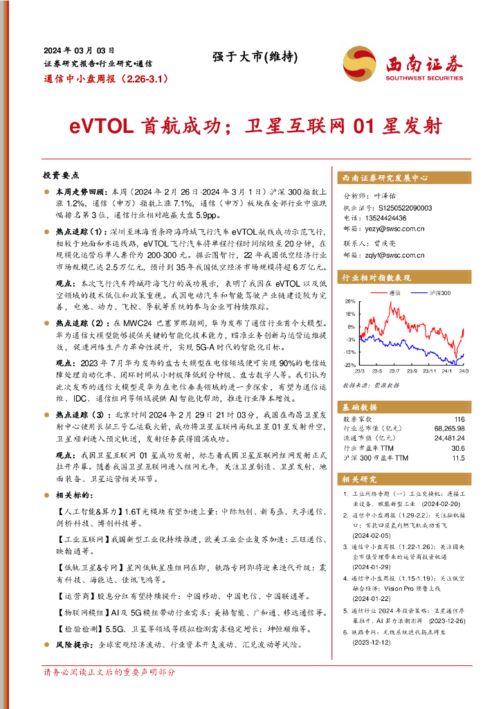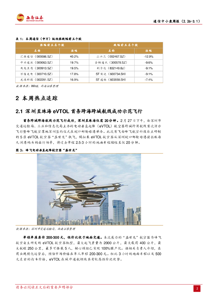 西南证券:通信中小盘周报:eVTOL首航成功;卫星互联网01星发射.pdf