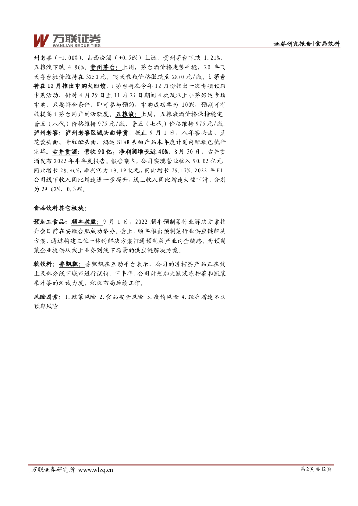 万联证券:食品饮料行业周观点:贵州投资百亿部署重点白酒项目,顺丰控股入局预制菜行业.pdf