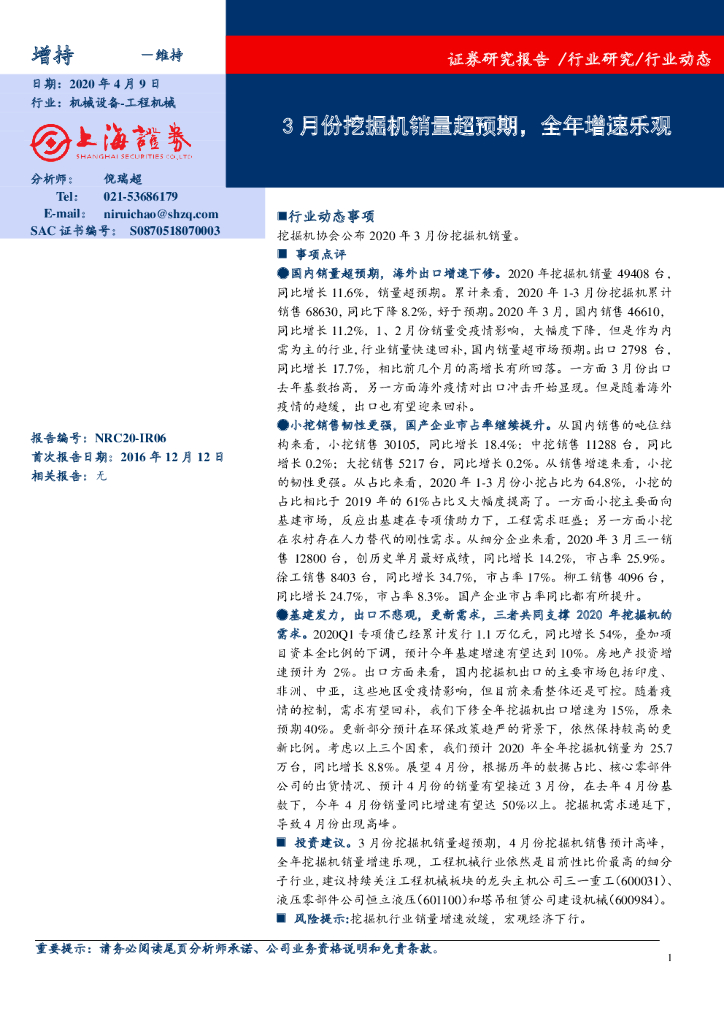 上海证券:机械设备行业动态:3月份挖掘机销量超预期,全年增速乐观.pdf