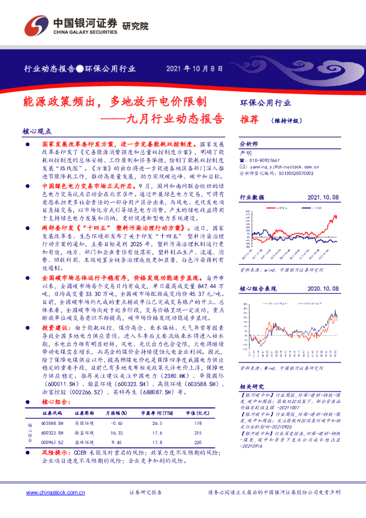 中国银河:环保公用九月行业动态报告:能源政策频出,多地放开电价限制.pdf