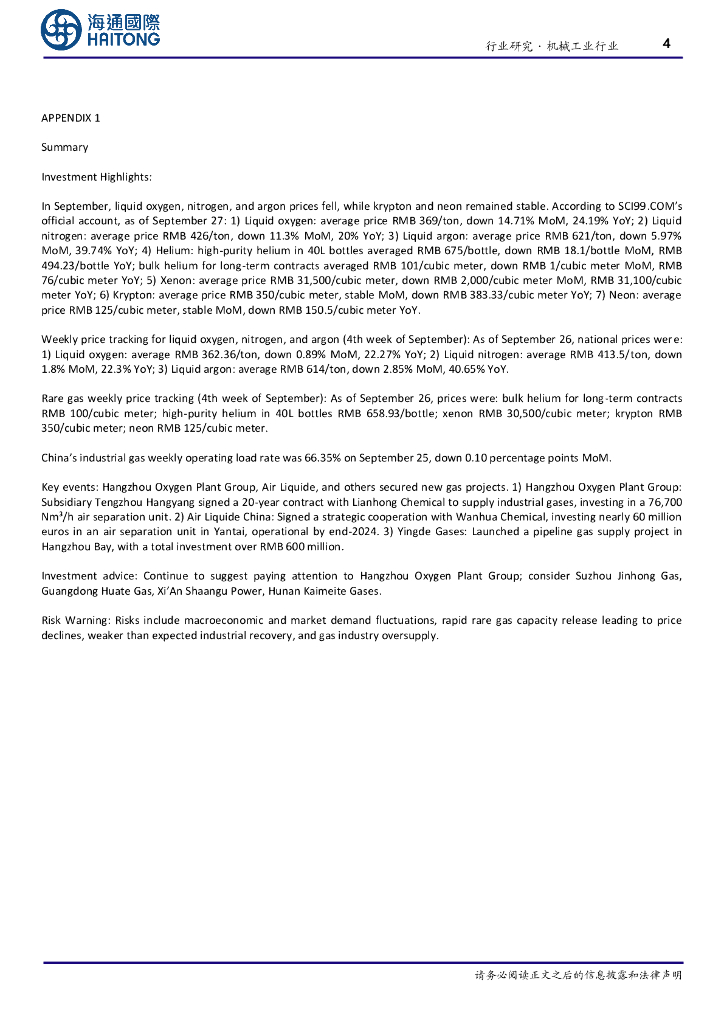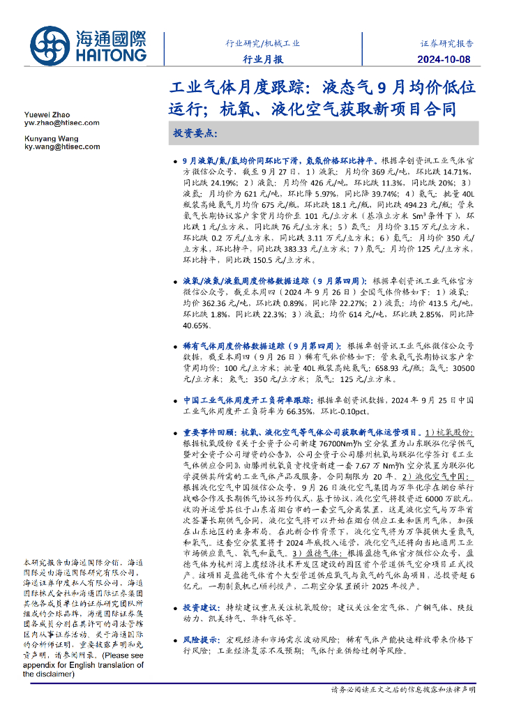 海通国际:工业气体月度跟踪:液态气9月均价低位运行;杭氧、液化空气获取新项目合同.pdf