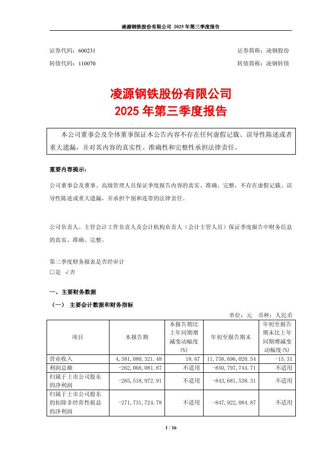 110070-凌钢股份:凌源钢铁股份有限公司2025年第三季度报告.pdf