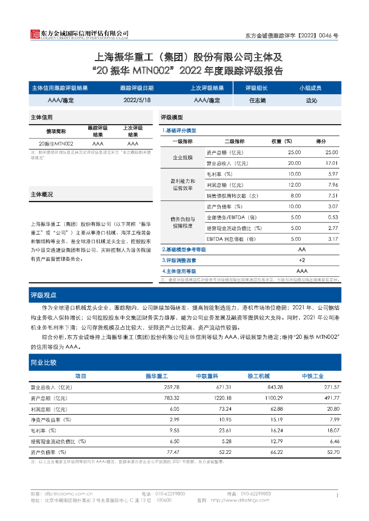 东方金诚:上海振华重工(集团)股份有限公司主体及“20振华MTN002”2022年度跟踪评级报告.pdf