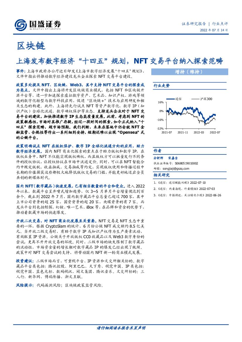 国盛证券:通信行业区块链:上海发布数字经济“十四五”规划,NFT交易平台纳入探索范畴.pdf