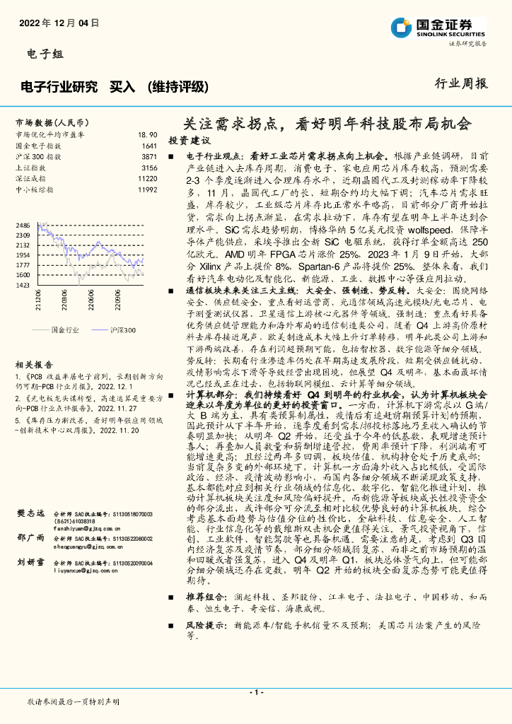 国金证券:电子行业研究:关注需求拐点,看好明年科技股布局机会.pdf