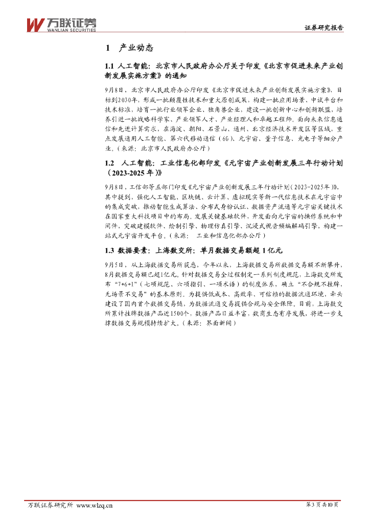 万联证券:计算机行业周观点:多个人工智能相关政策出台,上海数交所单月交易额超1亿元.pdf