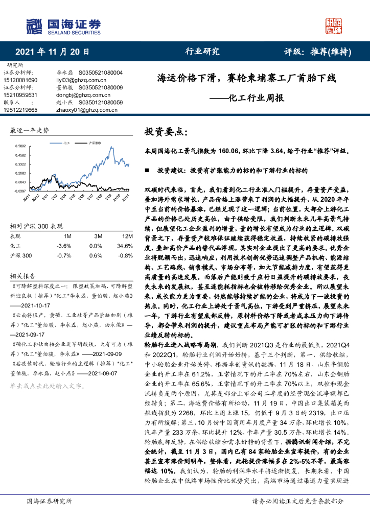 国海证券:化工行业周报:海运价格下滑,赛轮柬埔寨工厂首胎下线.pdf